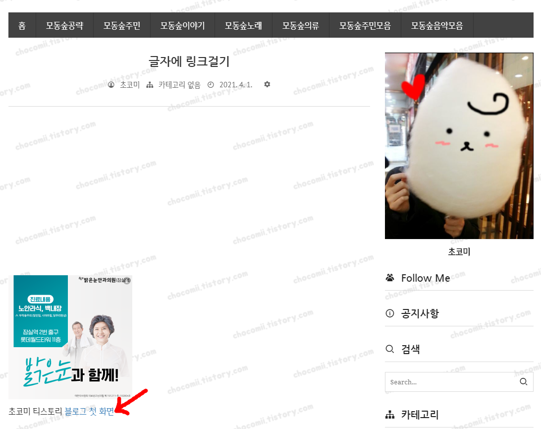 Chocomi TV | 티스토리 블로그 본문에 있는 글자나 이미지에 링크를 거는 방법입니다.