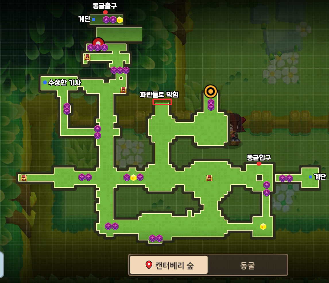 다른 맵으로 열리는 수상한 기사 서브 퀘스트.