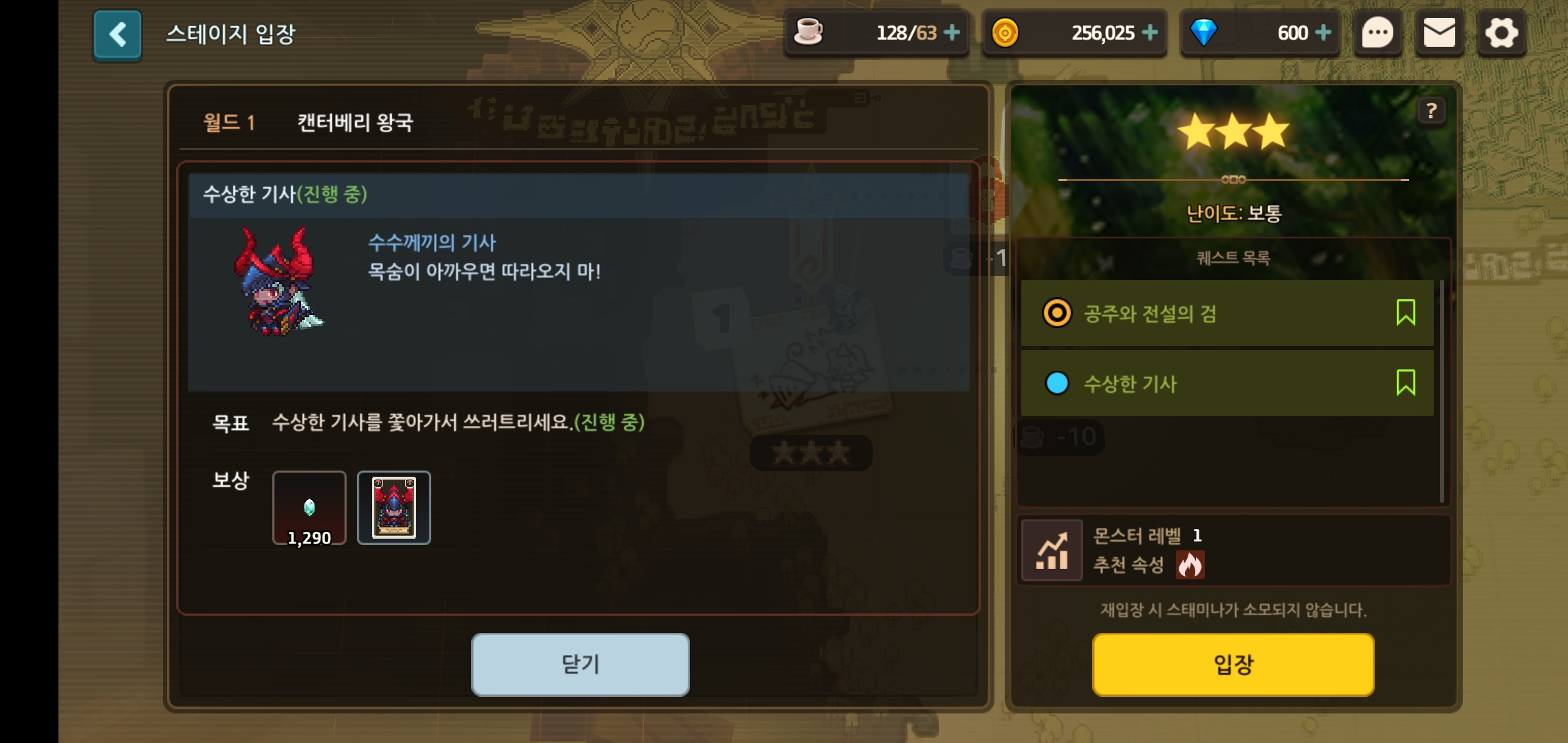 수상한 기사의 레벨은 30으로, 좀더 힘을 키우고 도전하도록 하자.