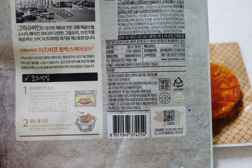 함박스테이크가 먹고싶어 뭘 먹을까 보다가 사온 그릭슈바인 치즈비프 함박스테이크.