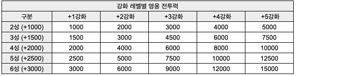- 희귀 무기 20렙은 전투력 8000 으로 가정했습니다.