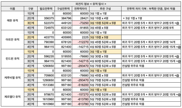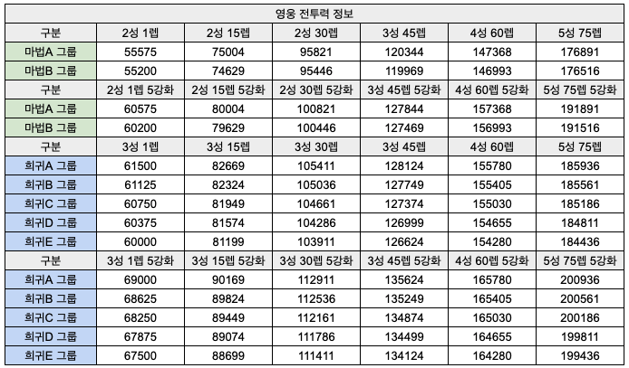 - 추천 구성의 영웅은 마법B 그룹을 기준으로 산정했습니다.