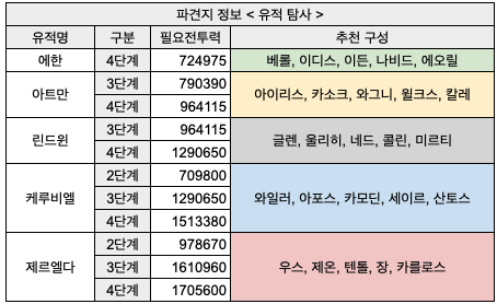 파견과 유적탐사에 대한 정보는 아래 링크를 참고해 주세요.