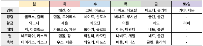 수요일 - 투력이 높을수록 성공할 던전이 많아집니다. (와일러, 아포스 먼저 육성)
