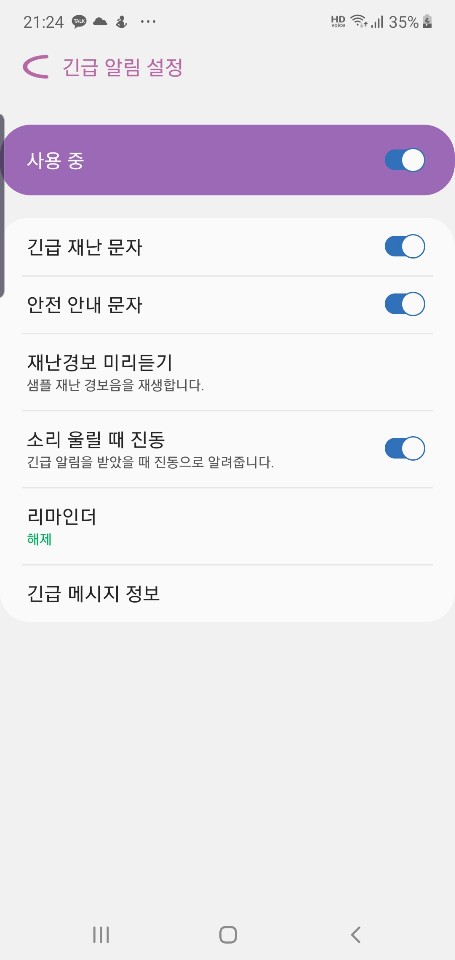 요즘같은 상황은 무조건 설정해놔야겠지만, 혹시 또 언제 인재나 자연재해같은 재난 상황이 있을 지 모르니 항시 켜놓는게 좋을 것 같다.