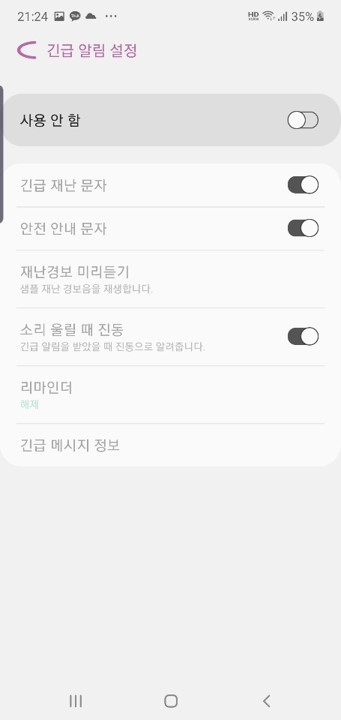 갤럭시 긴급재난문자 설정/해제하는 방법