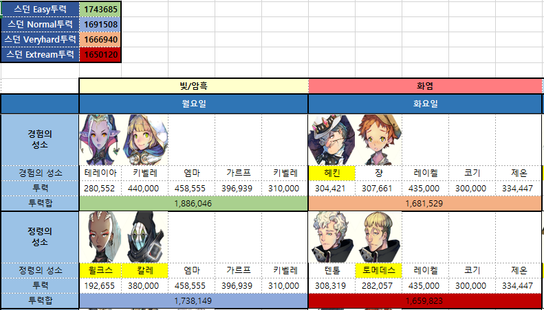 노말이나 베리하드, 익스트림 구분도 가능하겠지만 빠른전투가 목표이므로 구지 분류하지 않았습니다.