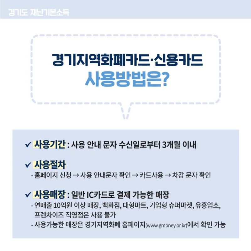 사용 가능한 매장은 경기지역화폐 홈페이지 www.gmoney.or.kr에서 확인 가능하다.