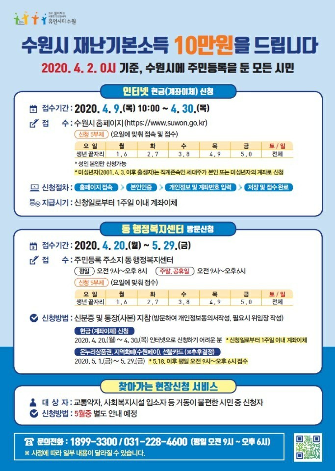 일단 수원시에서 재난기본소득 10만원을 줌.