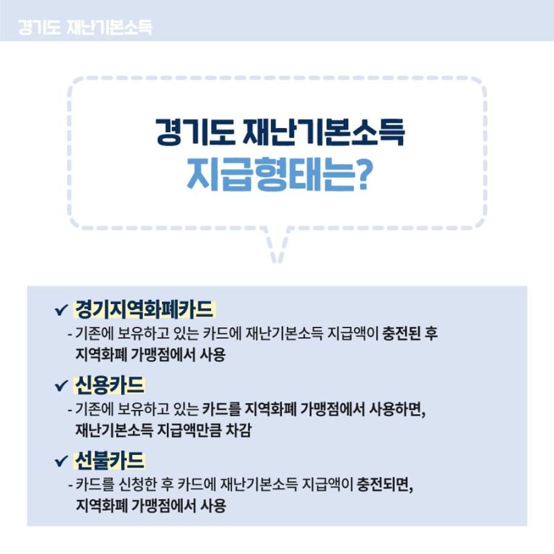 경기지역화폐카드나 신용카드, 선불카드로 지급가능하다.