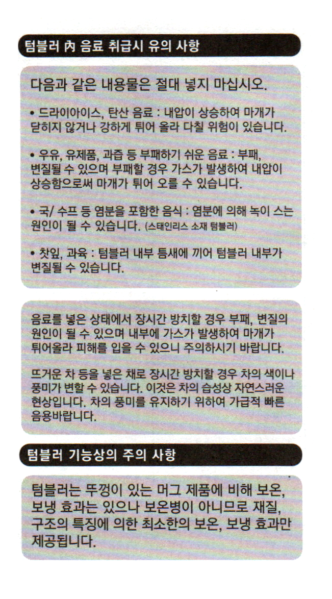 텀블러 안전상 주의 사항