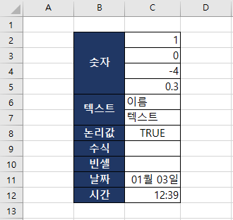 숫자인 C2:C5는 숫자이고, 날짜와 시간 역시 숫자로 분류되기 때문이다.