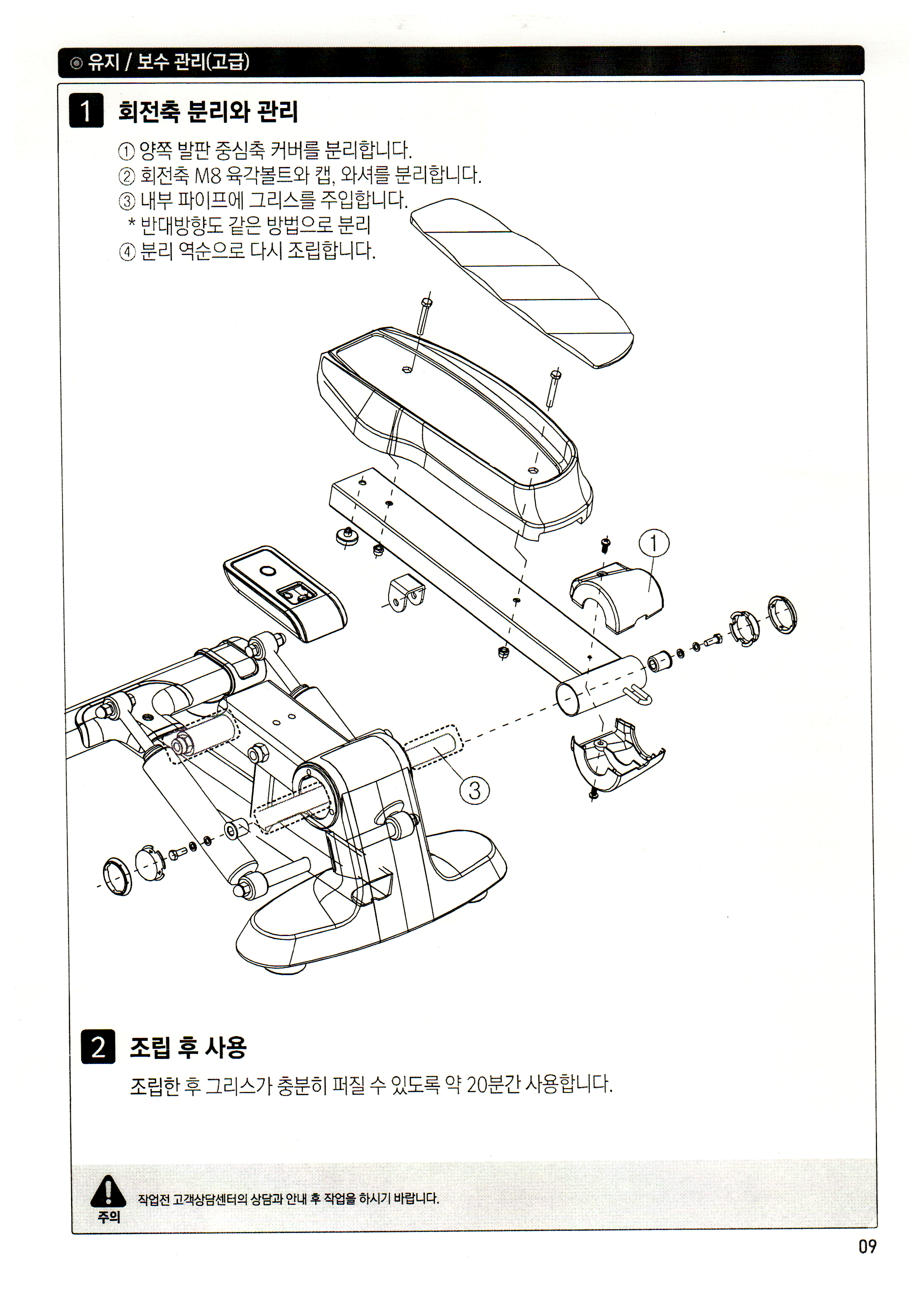 조립한 후 그리스가 충분히 퍼질 수 있도록 약 20분간 사용합니다.