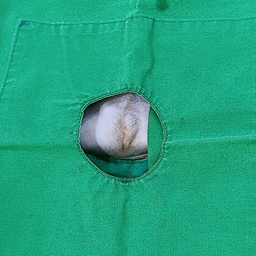 확실히 원래 뽕알이 있어야 할 자리는 실밥이 한 개인데, 잠복고환을 제거한 곳은 실밥이 4개나 된다.